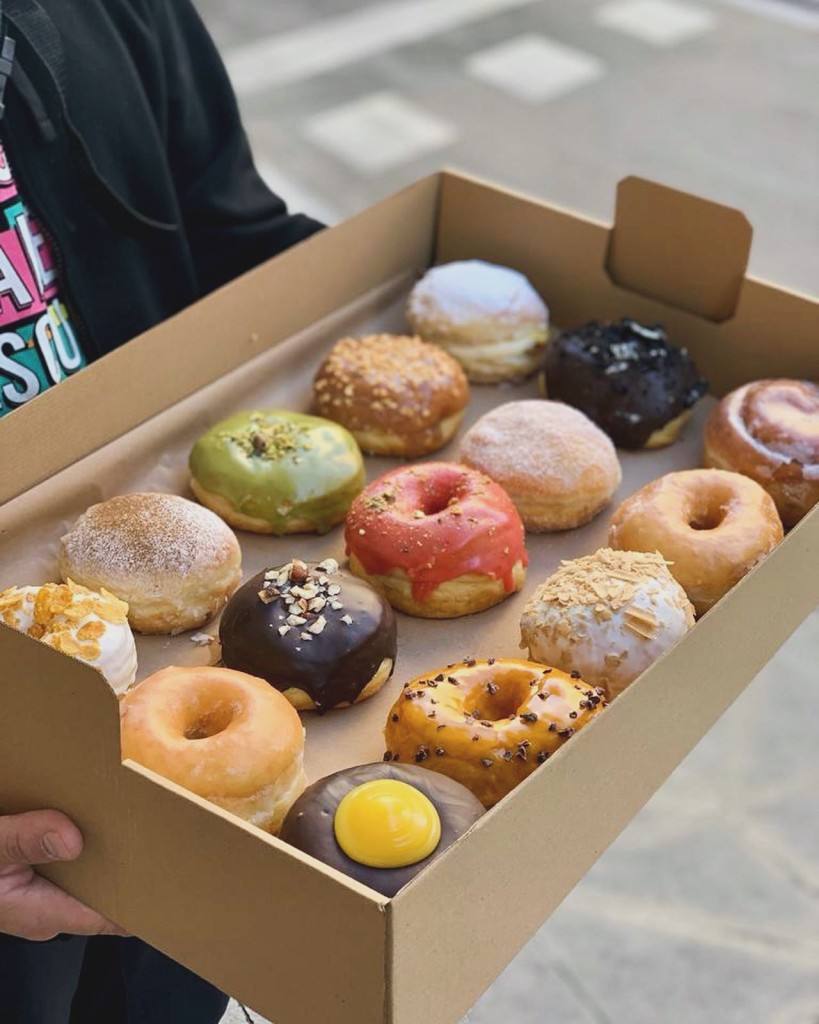 Handcrafted doughnuts (of many shapes, sizes, and flavors) and artisanal coffee in a small, minimally designed shop.