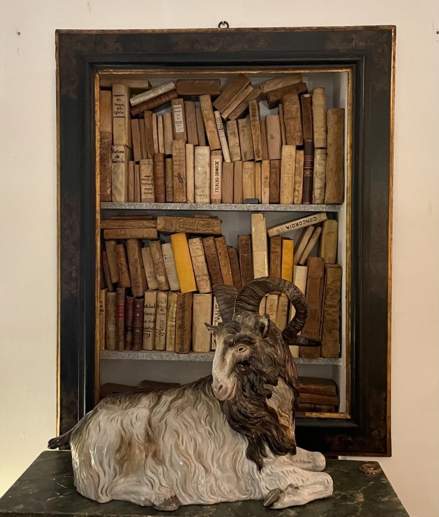Elevated art, antique, and other home decor stalls in an architecturally beautiful complex adjacent to El Rastro, a world-famous open-air flea market.